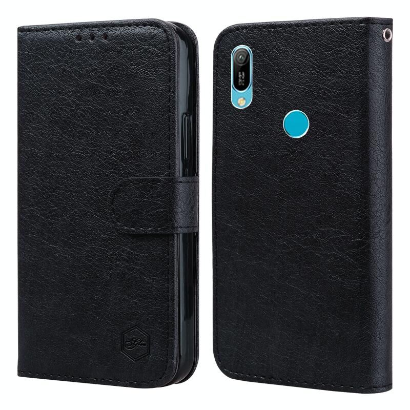 Θήκη κινητού τηλεφώνου Huawei Y6 2019 με υφή δέρματος λαδιού PU + TPU (Μαύρο)