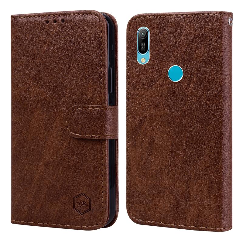 For Huawei Y6 2019 Skin Feeling Oil Leather Texture PU + TPU Phone Case(Brown)