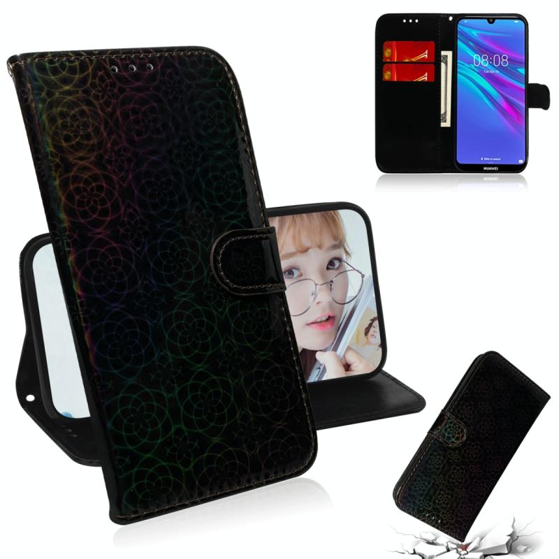 Θήκη για Huawei Y6 2019, μονόχρωμη, πολύχρωμη, με μαγνητικό κούμπωμα, οριζόντια, από δερματίνη PU, με βάση στήριξης, θήκες για κάρτες, πορτοφόλι & λουρί (Ροζ)