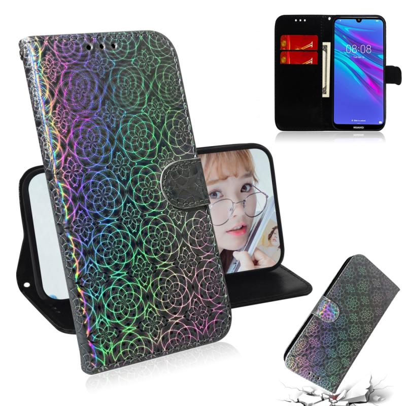 Θήκη για Huawei Y6 2019, μονόχρωμη, πολύχρωμη, με μαγνητικό κούμπωμα, οριζόντια, από δερματίνη PU, με βάση στήριξης, θήκες για κάρτες, πορτοφόλι & λουρί (Ροζ)