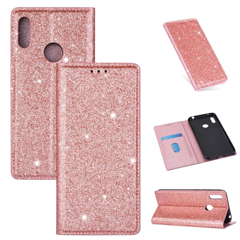Για Huawei Y6 (2019) Ultrathin Glitter μαγνητική οριζόντια Flip δερμάτινη θήκη με υποδοχή & υποδοχές καρτών (ροζ χρυσό)