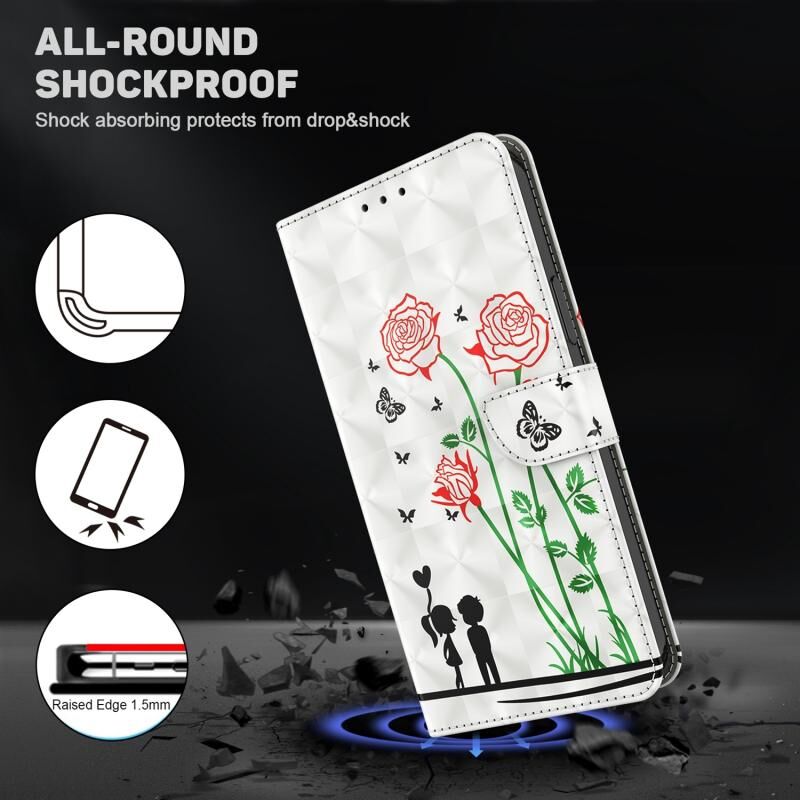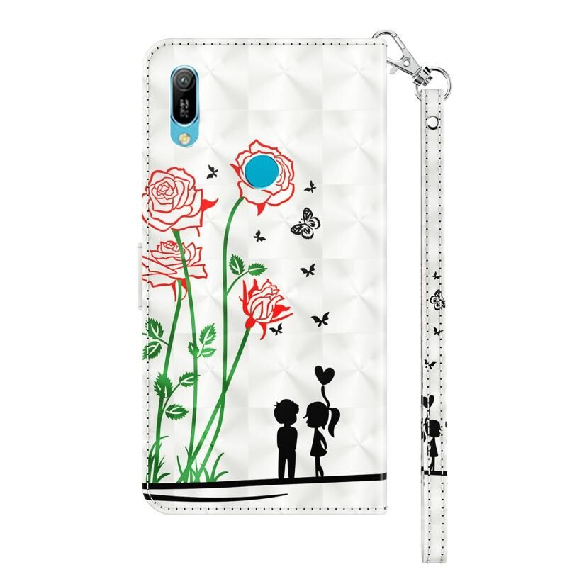 Θήκη τηλεφώνου από δέρμα με τρισδιάστατη ζωγραφική για Huawei Y6 2019 / Y6 Pro 2019 (Ζευγάρι Τριαντάφυλλα)