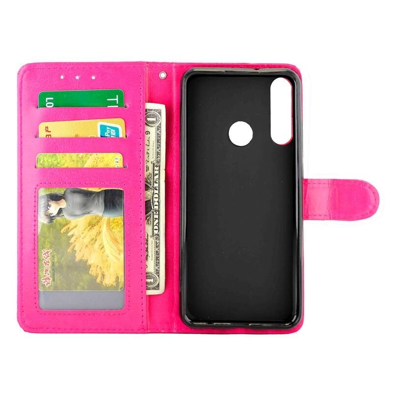 Για το Huawei Y6p(2020) Crazy Horse Texture Leather Horizontal Flip Protective Case with Holder & Card Slots & Wallet & Photo Frame (Magenta)