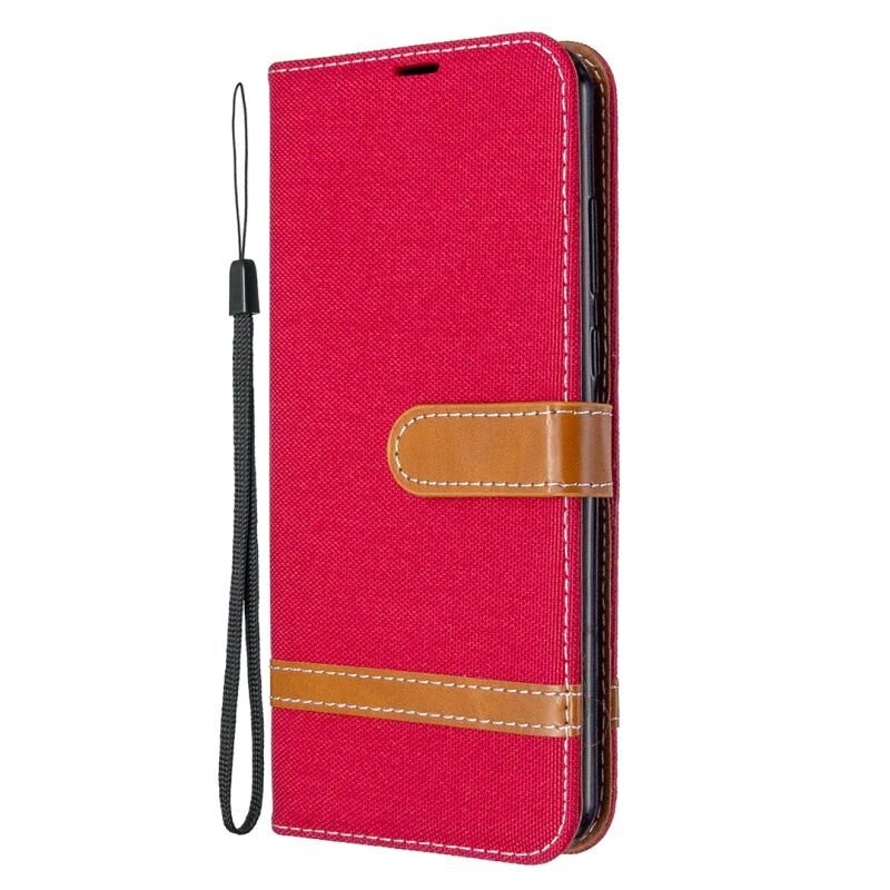 Για Huawei Y6P Χρώμα ταιριάζουν Denim υφή οριζόντια Flip δερμάτινη θήκη με κάτοχο & υποδοχές για κάρτες & πορτοφόλι & κορδόνι (κόκκινο)