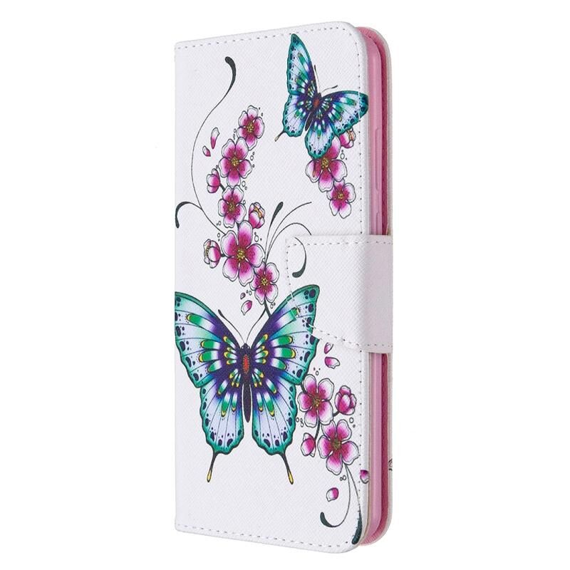 Θήκη Huawei Y6P με έγχρωμα σχέδια, οριζόντια αναδιπλούμενη από δέρμα με βάση στήριξης & θήκες για κάρτες & πορτοφόλι (Πεταλούδες)
