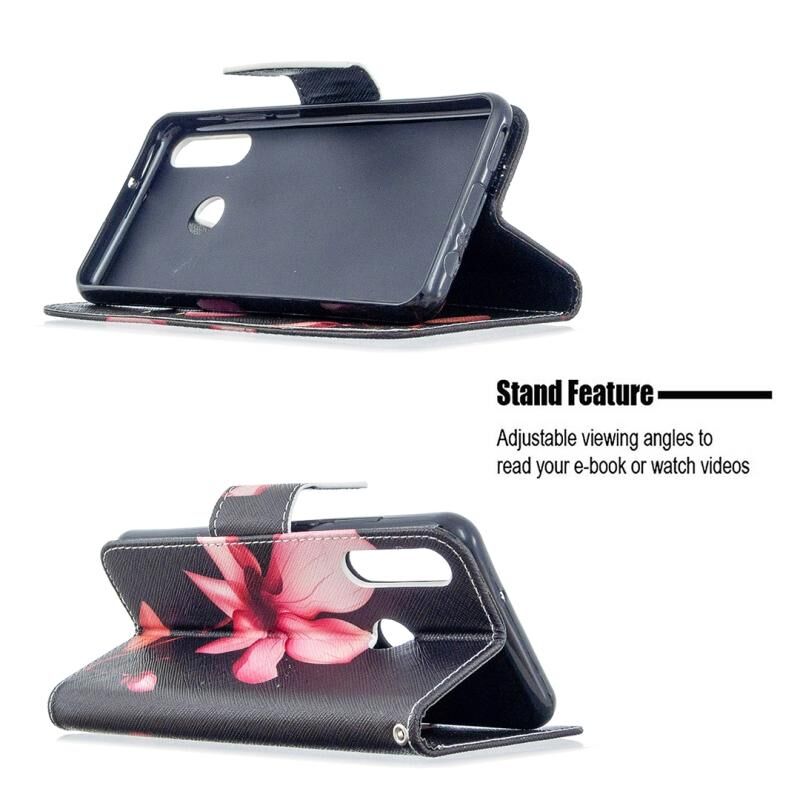 Θήκη Huawei Y6P με έγχρωμα σχέδια, οριζόντια αναδίπλωση από δέρμα με βάση στήριξης & θήκες για κάρτες & πορτοφόλι (Λωτός)