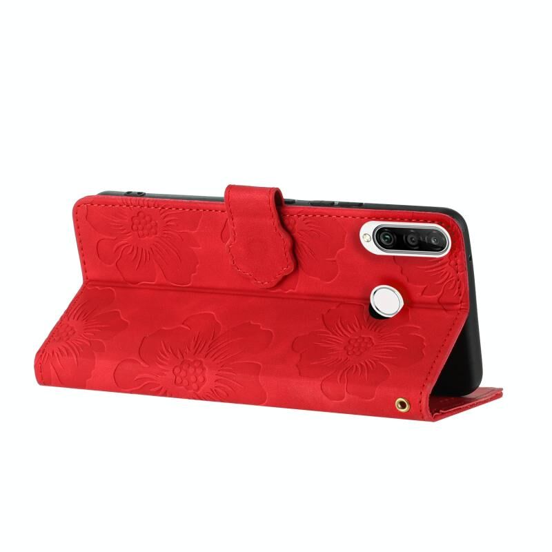 Για Huawei Y6p λουλούδι ανάγλυφο μοτίβο δερμάτινη θήκη τηλεφώνου (κόκκινο)