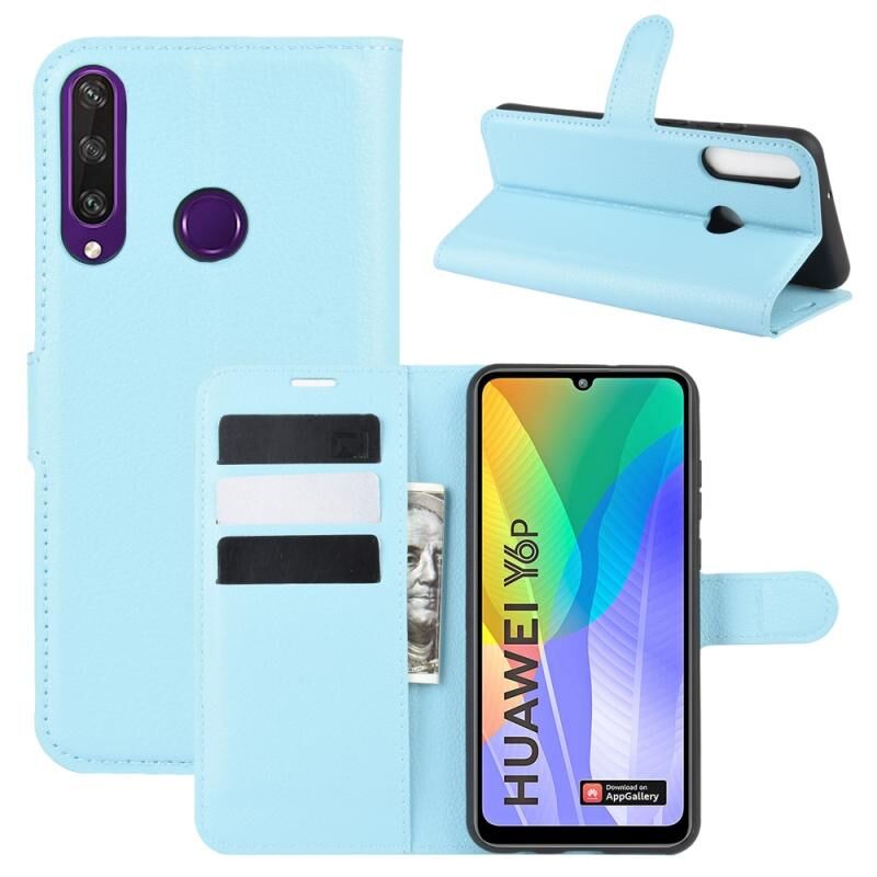 For Huawei Y6p Litchi Texture Horizontal Flip Protective Case with Holder & Card Slots & Wallet(Blue)