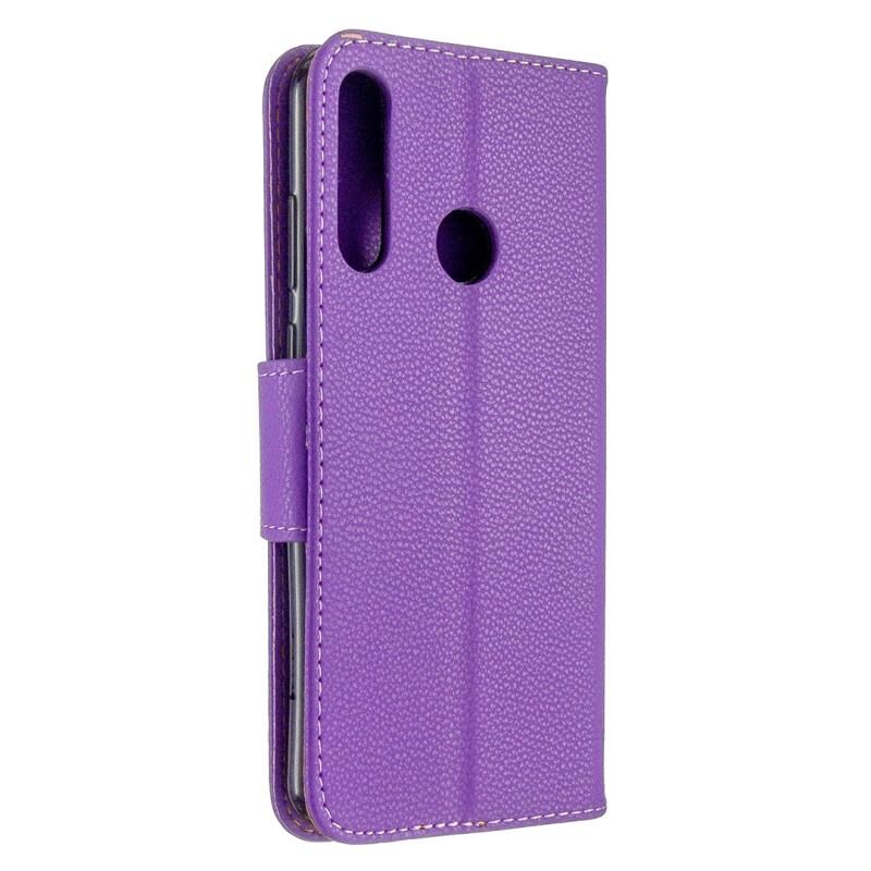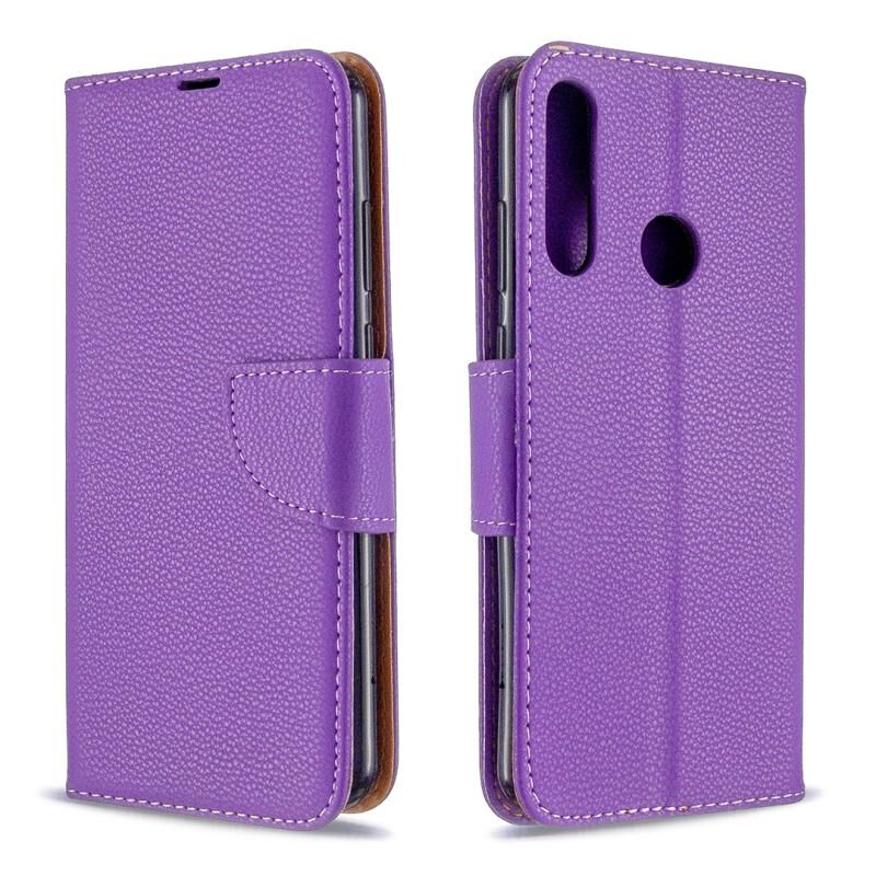 Για Huawei Y6P Litchi υφή καθαρό χρώμα οριζόντια Flip PU δέρμα υπόθεση με κάτοχο & υποδοχές για κάρτες & πορτοφόλι & κορδόνι (μωβ)