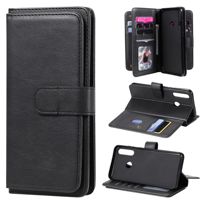 Για Huawei Y6P Πολυλειτουργική μαγνητική χάλκινη πόρπη οριζόντια Flip Solid Color δερμάτινη θήκη με 10 υποδοχές για κάρτες & πορτοφόλι & κάτοχος & κορνίζα φωτογραφιών (μαύρο)