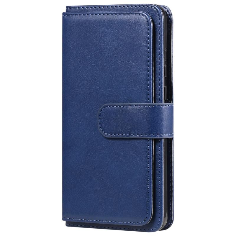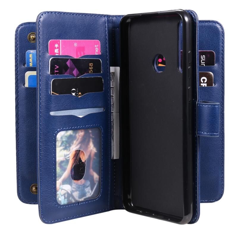 Για Huawei Y6P Πολυλειτουργική μαγνητική χάλκινη πόρπη οριζόντια Flip Solid Color δερμάτινη θήκη με 10 υποδοχές για κάρτες & πορτοφόλι & κάτοχος & κορνίζα φωτογραφιών (σκούρο μπλε)