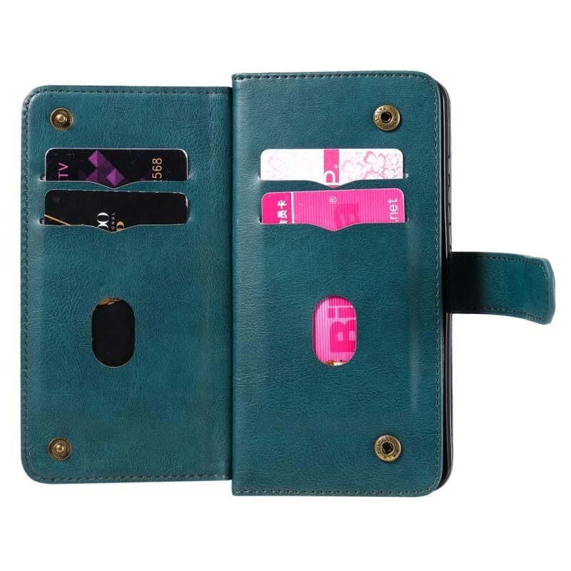 Για Huawei Y6P Πολυλειτουργική μαγνητική χάλκινη πόρπη οριζόντια Flip Solid Color δερμάτινη θήκη με 10 υποδοχές για κάρτες & πορτοφόλι & κάτοχος & κορνίζα φωτογραφιών (Σκούρο πράσινο)