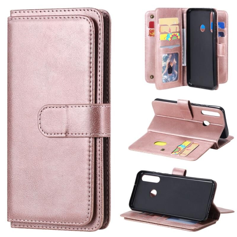 Για Huawei Y6P Πολυλειτουργική μαγνητική χάλκινη πόρπη οριζόντια Flip αμιγές χρώμα δερμάτινη θήκη με 10 υποδοχές για κάρτες & πορτοφόλι & κάτοχος & κορνίζα φωτογραφιών (Ροζ χρυσός)