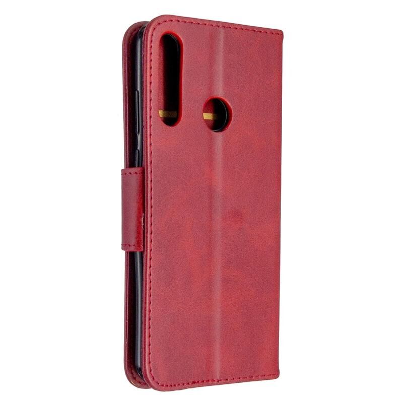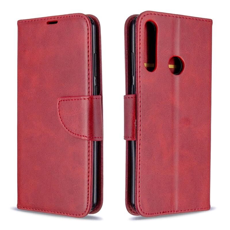 Για Huawei Y6P Retro Lambskin υφή καθαρό χρώμα οριζόντια Flip PU δερμάτινη θήκη με κάτοχο & υποδοχές καρτών & πορτοφόλι & κορδόνι (κόκκινο)