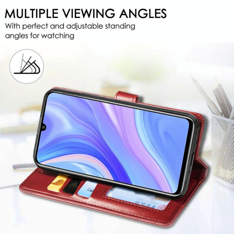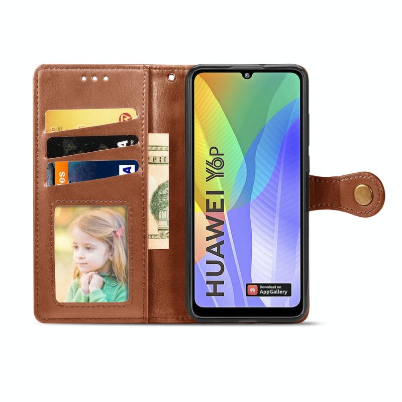 For Huawei Y6P Retro Solid Color Leather Buckle Phone Case with Lanyard & Photo Frame & Card Slot & Wallet & Stand Function(Brown)