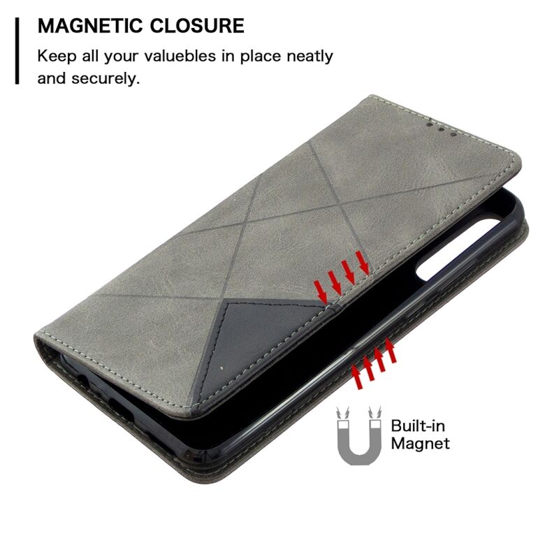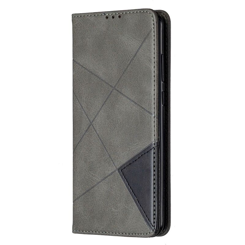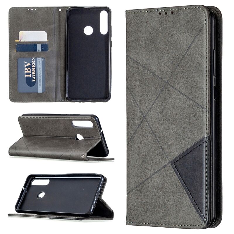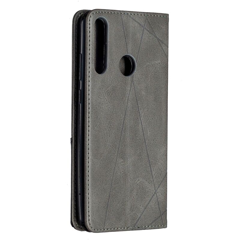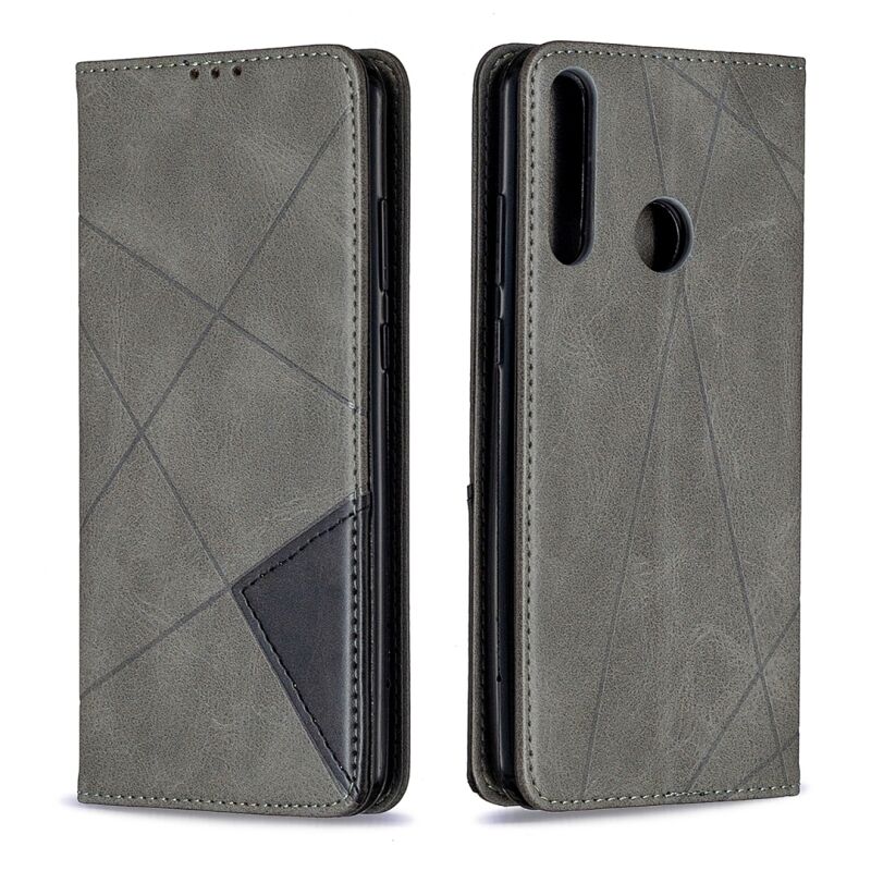 Για Huawei Y6p Rhombus υφή οριζόντια Flip μαγνητική δερμάτινη θήκη με κάτοχο & υποδοχές για κάρτες & πορτοφόλι (γκρι)