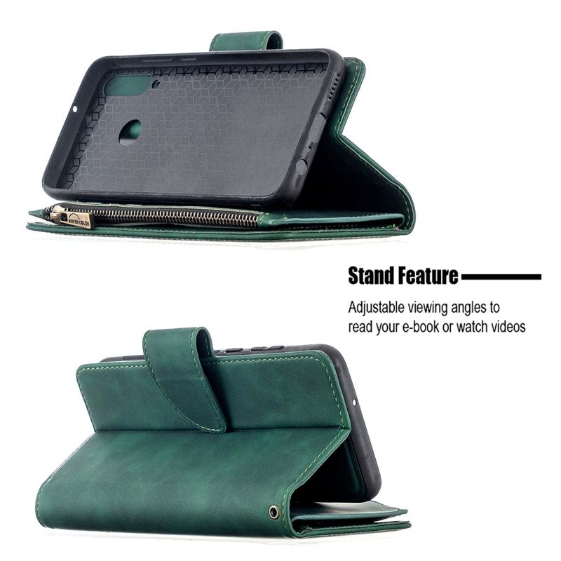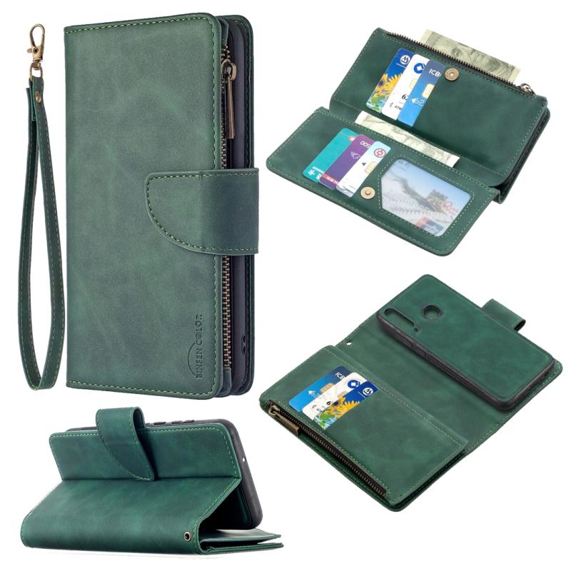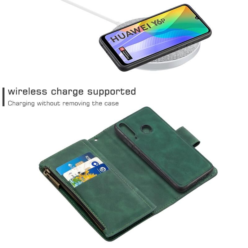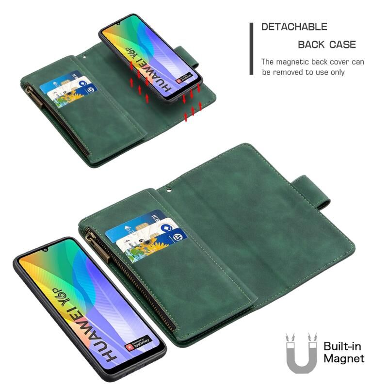 For Huawei Y6P Skin Feel Detachable Magnetic Zipper Horizontal Flip PU Leather Case with Multi-Card Slots & Holder & Wallet & Photo Frame & Lanyard(Green)