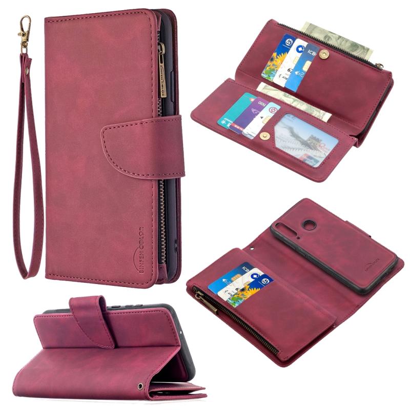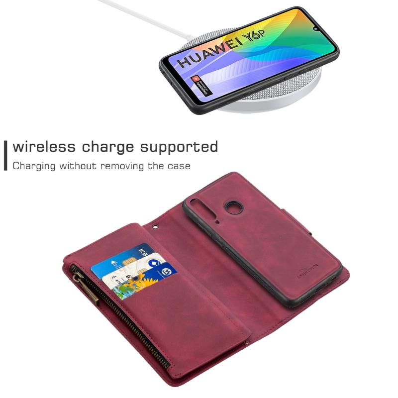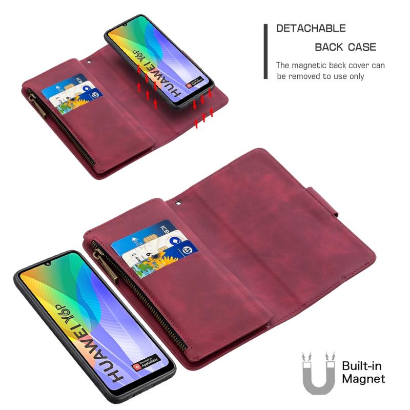 For Huawei Y6P Skin Feel Detachable Magnetic Zipper Horizontal Flip PU Leather Case with Multi-Card Slots & Holder & Wallet & Photo Frame & Lanyard(Red)