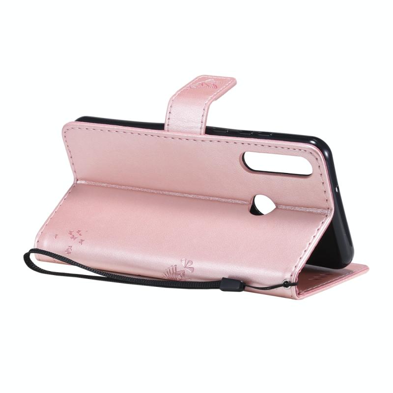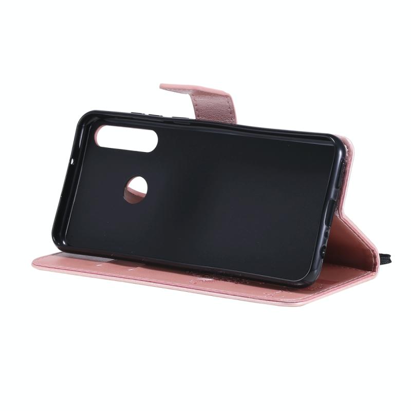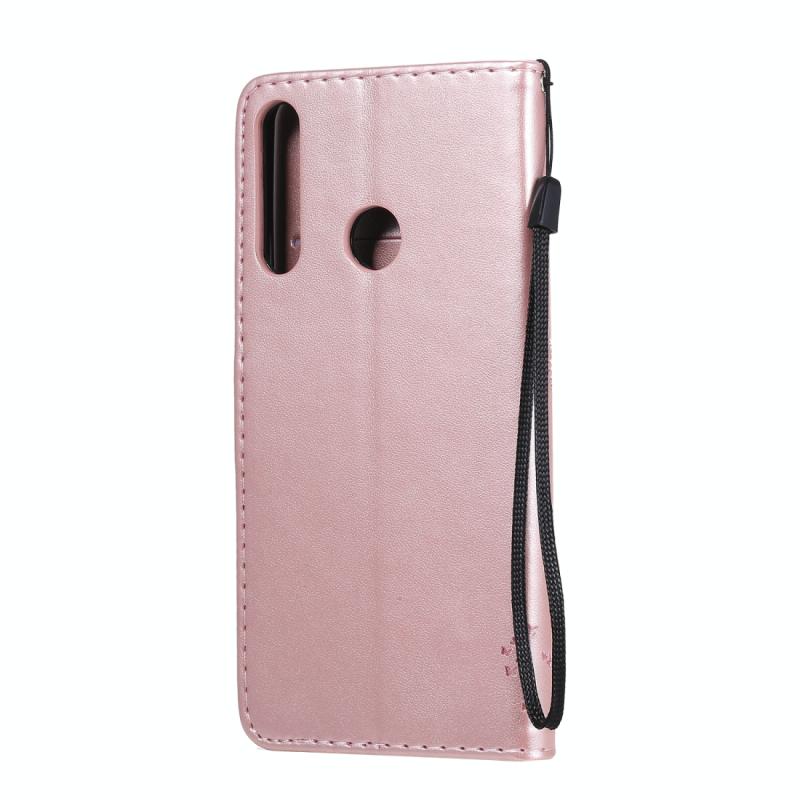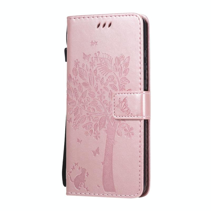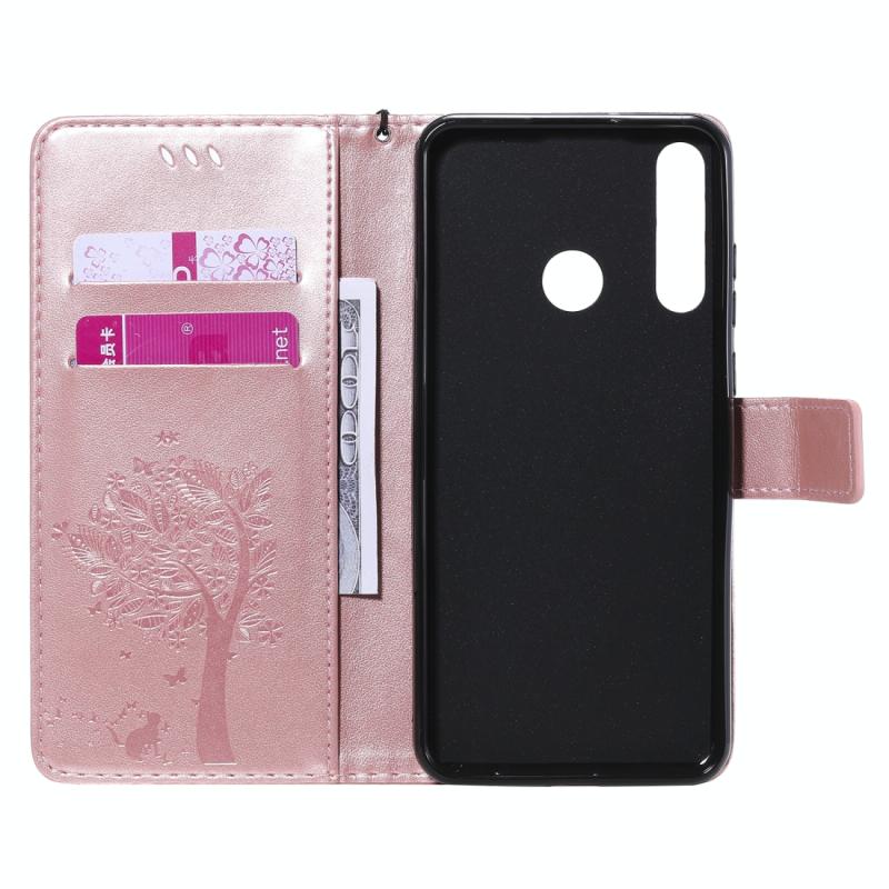 For Huawei Y6p Tree & Cat Embossed Pattern Horizontal Flip Leather Case with Holder & Card Slots & Wallet & Lanyard(Rose Gold)