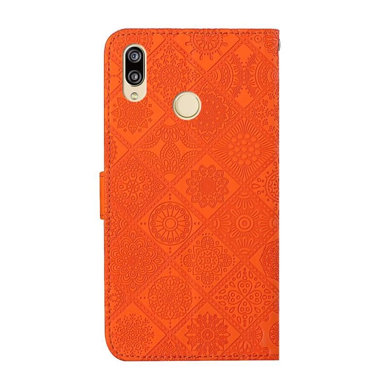 Για Huawei Y7 (2019) Ethnic Style ανάγλυφο μοτίβο οριζόντια Flip δερμάτινη θήκη με κάτοχο & υποδοχές καρτών & πορτοφόλι & κορδόνι (πορτοκαλί)