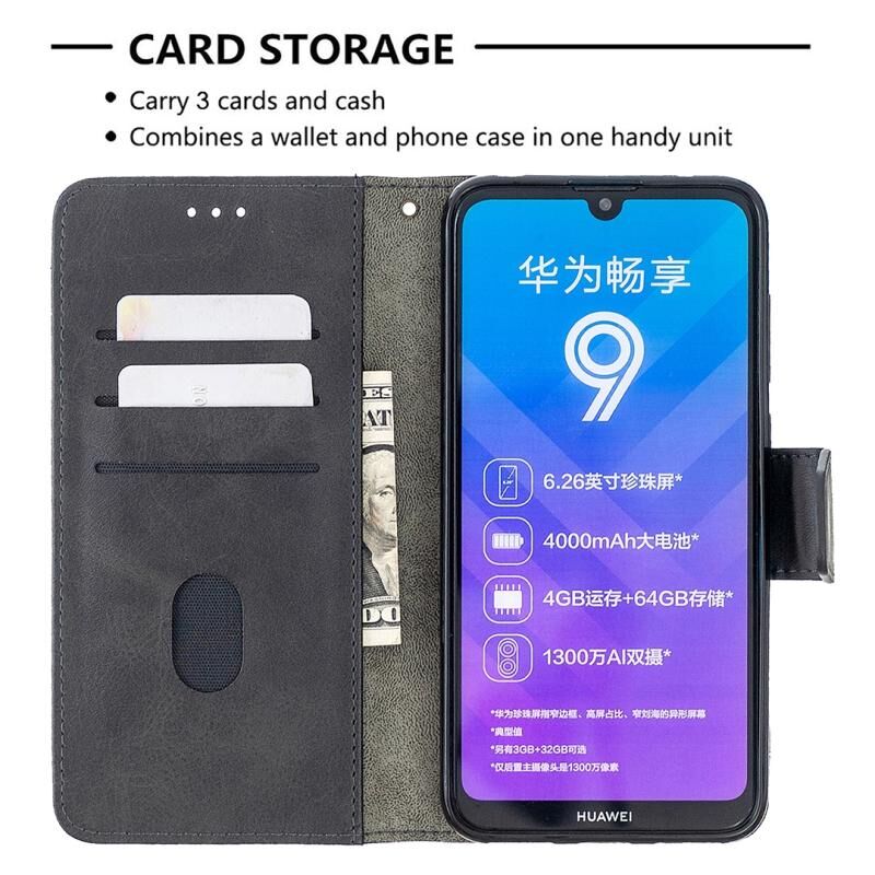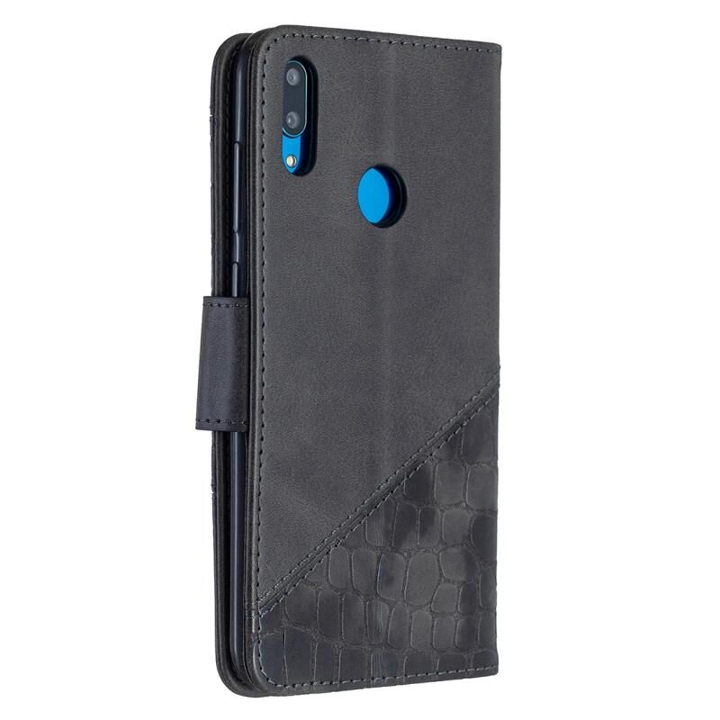 Θήκη Huawei Y7 (2019) Οριζόντιας Ανοίγματος από Δερματίνη PU με Υφή Κροκόδειλου, σε Αντίστοιχο Χρώμα, με Στήριξη & Θήκες Καρτών & Πορτοφόλι (Μαύρο)