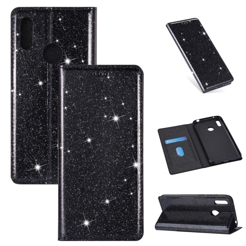Για Huawei Y7 (2019) Ultrathin Glitter μαγνητική οριζόντια Flip δερμάτινη θήκη με υποδοχή & υποδοχές καρτών (μαύρο)