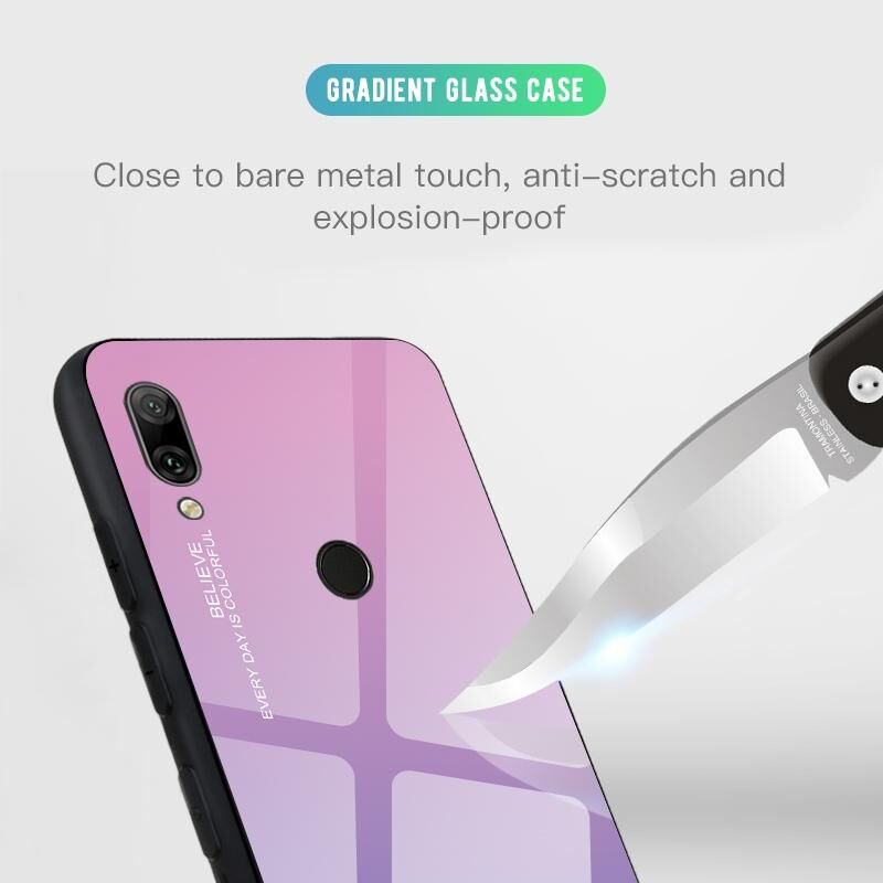 Για Huawei Y7 (2019) / / Y7 Prime (2019) Γυάλινη θήκη χρώματος διαβάθμισης (Sky Blue)