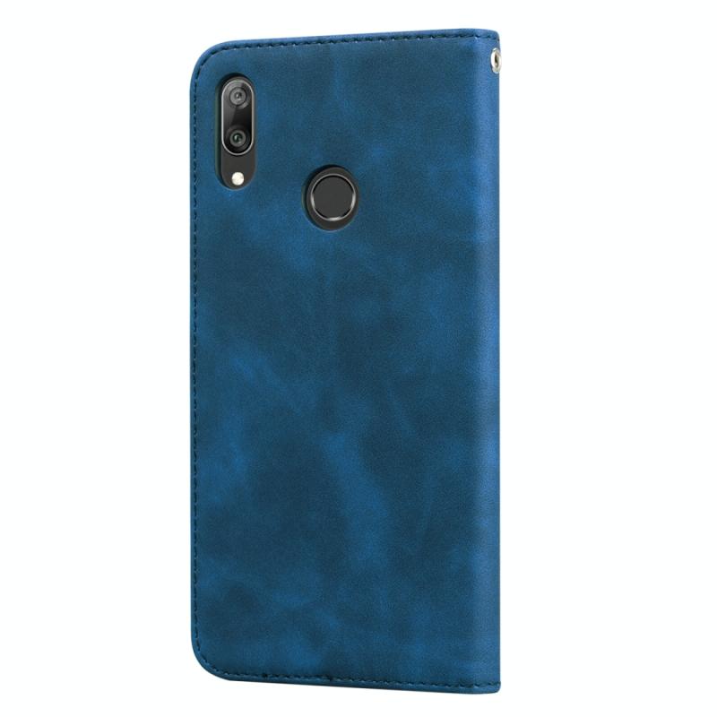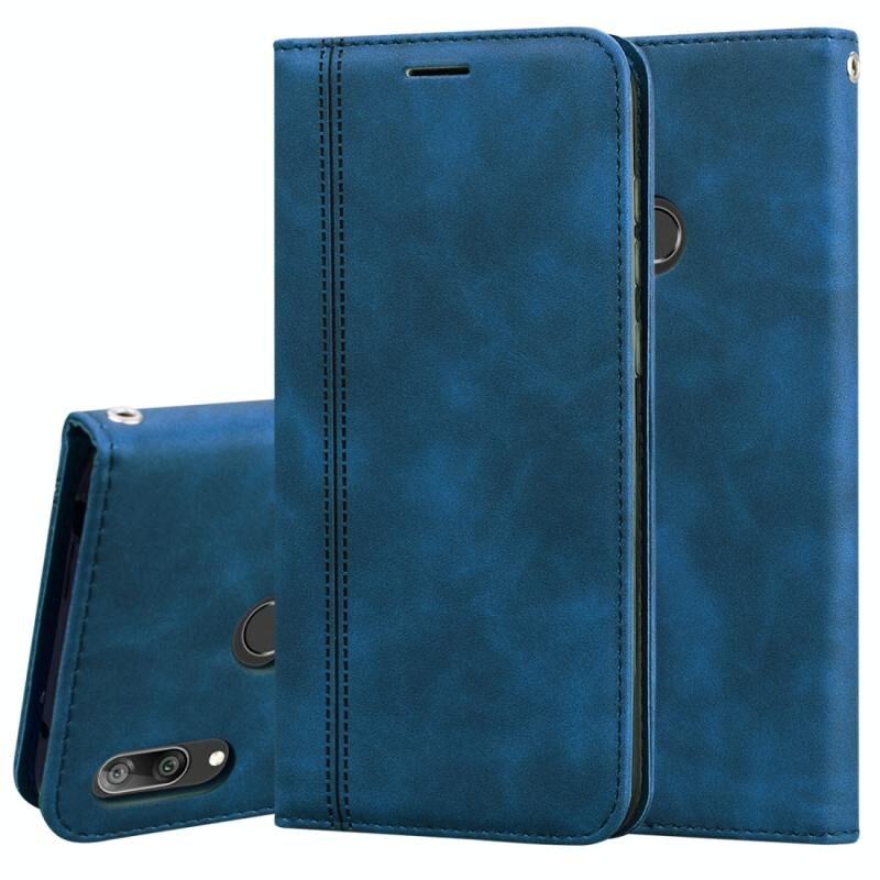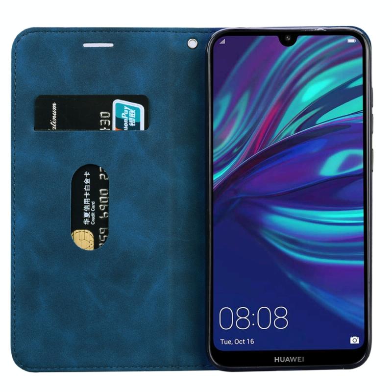 Θήκη Huawei Y7 Prime (2019) με μαγνητικό κλείσιμο, οριζόντια, από δερματίνη PU με ματ υφή, με βάση στήριξης, θήκη για κάρτες και κορδόνι (Μπλε)