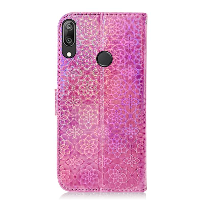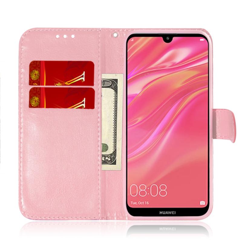 Θήκη για Huawei Y7 Prime 2019, μονόχρωμη, πολύχρωμη, με μαγνητικό κούμπωμα, οριζόντια, από δερματίνη PU, με βάση στήριξης, θήκες για κάρτες, πορτοφόλι & λουρί (ρόζ)