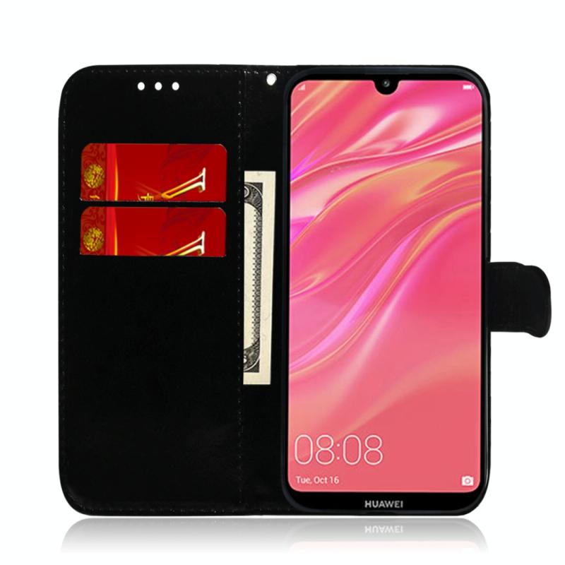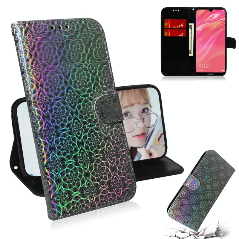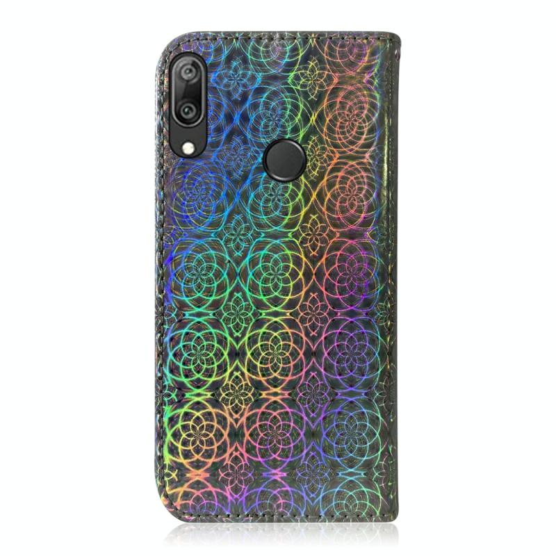 Θήκη για Huawei Y7 Prime 2019, μονόχρωμη, πολύχρωμη, με μαγνητικό κούμπωμα, οριζόντια, από δερματίνη PU, με βάση στήριξης, θήκες για κάρτες, πορτοφόλι & λουρί (Ασημί)
