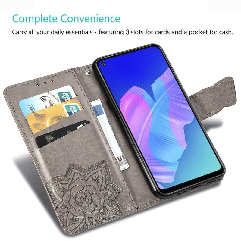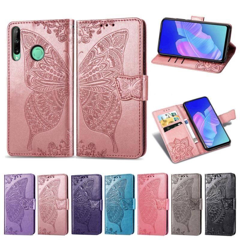 Για Huawei Y7P πεταλούδα αγάπη λουλούδι ανάγλυφο οριζόντια Flip δερμάτινη θήκη με βραχίονα / υποδοχή κάρτας / πορτοφόλι / κορδόνι (σκούρο μοβ)