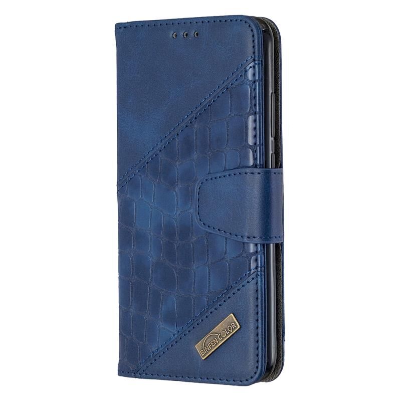 Θήκη Huawei Y7P με χρώμα που ταιριάζει, υφή κροκόδειλου, οριζόντια αναδίπλωση από δερματίνη PU με πορτοφόλι, βάση & υποδοχές καρτών (Μπλε)