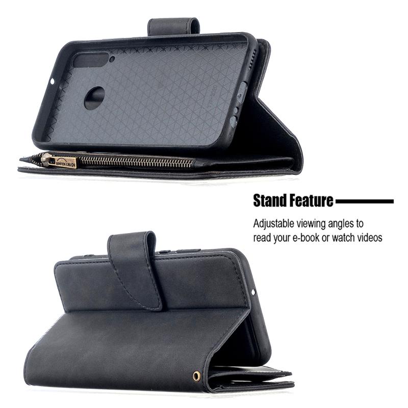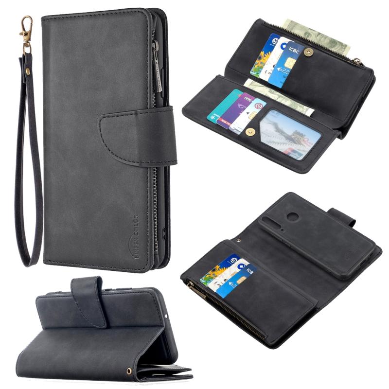 For Huawei Y7P Skin Feel Detachable Magnetic Zipper Horizontal Flip PU Leather Case with Multi-Card Slots & Holder & Wallet & Photo Frame & Lanyard(Black)
