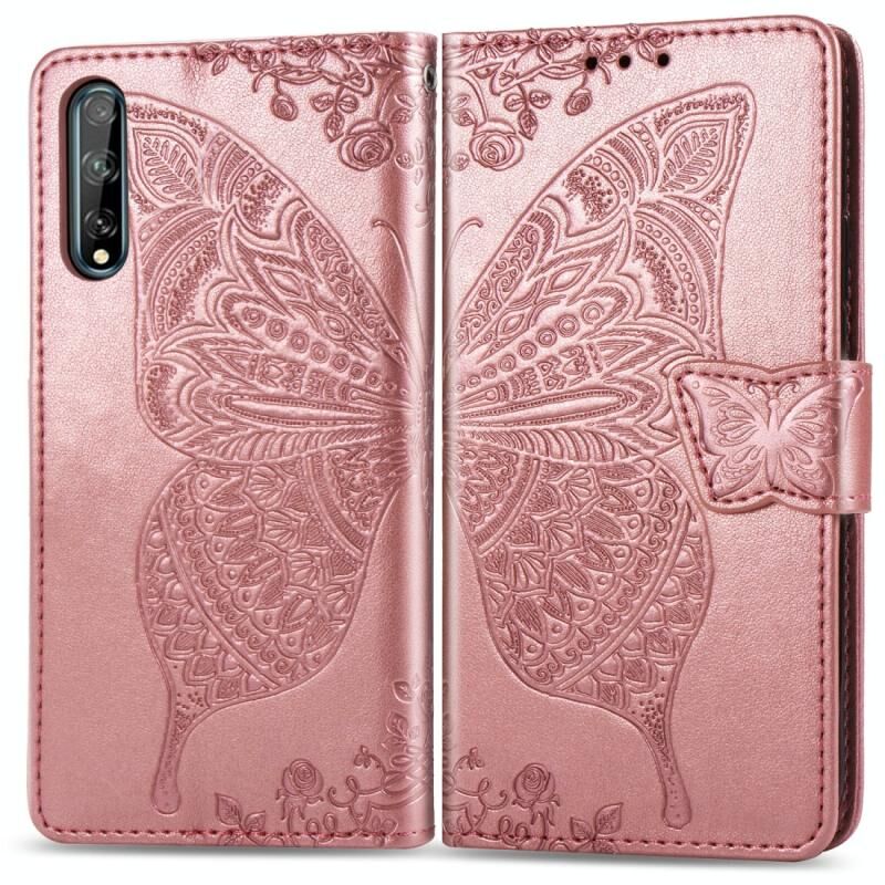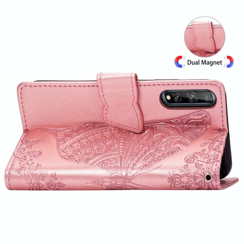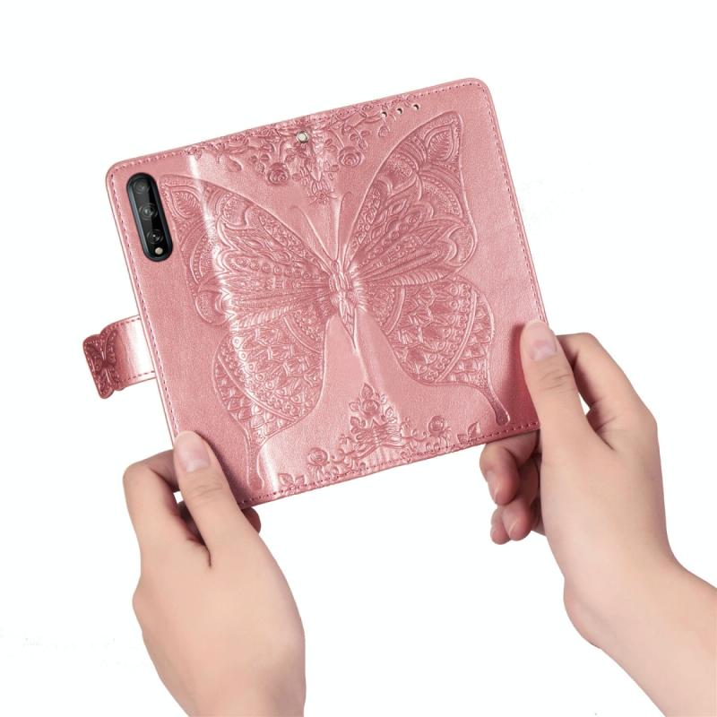 For Huawei Y8P/ Enjoy 10S Butterfly Love Flower Embossed Horizontal Flip Leather Case with Bracket / Card Slot / Wallet / Lanyard(Rose Gold)