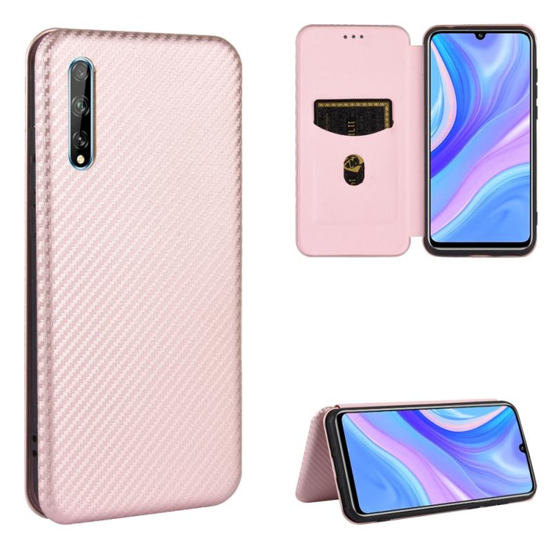 For Huawei Y8p / Enjoy 10S Carbon Fiber Texture Horizontal Flip TPU + PC + PU Leather Case with Card Slot(Pink)