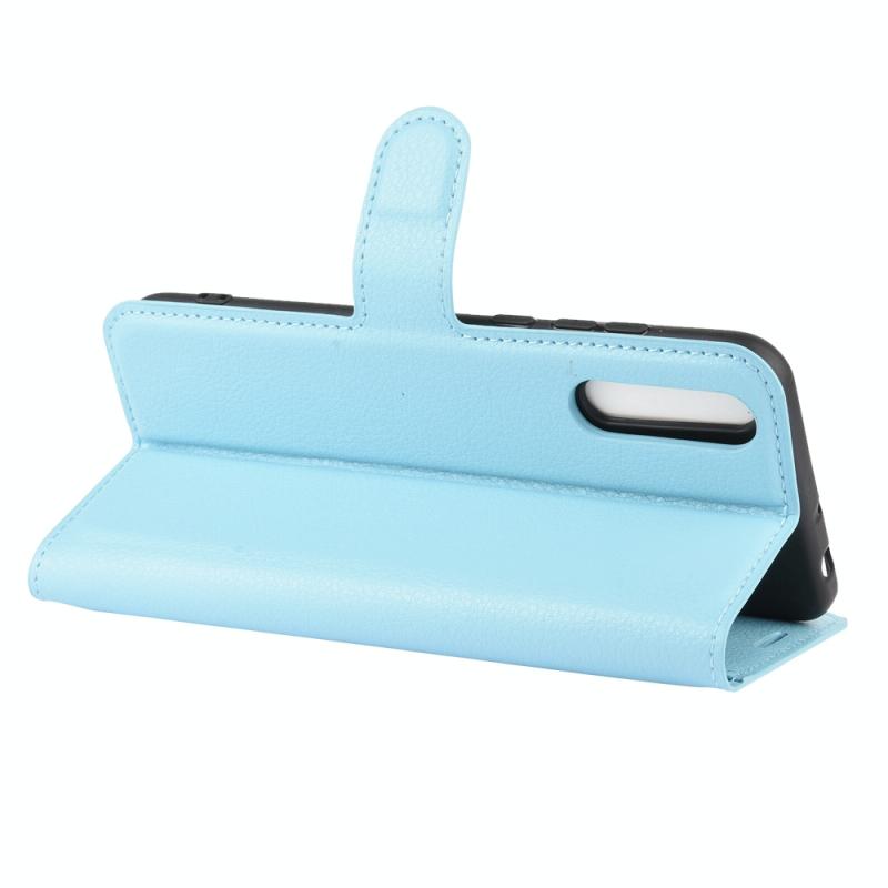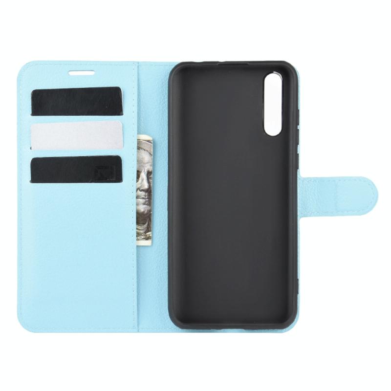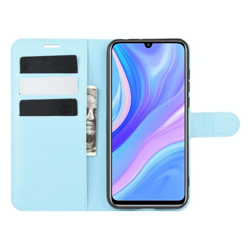 Θήκη προστασίας οριζόντιας αναδίπλωσης με υφή Λίτσι για Huawei Y8p/Enjoy 10s με βάση στήριξης & υποδοχές καρτών & πορτοφόλι (Κόκκινο τριαντάφυλλο)