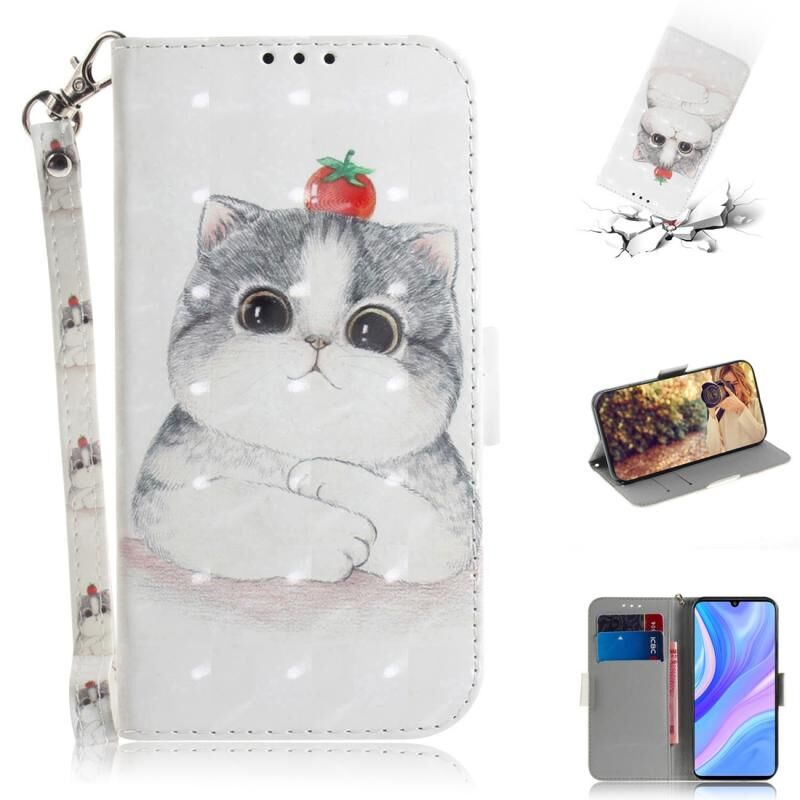 Θήκη δέρματος οριζόντιας αναδίπλωσης με μαγνητική έλξη και τρισδιάστατο σχέδιο για Huawei Y8p / P Smart S / Enjoy 10s, με βάση στήριξης, θήκη για κάρτες, πορτοφόλι και κορδόνι (Χαριτωμένη Γάτα)