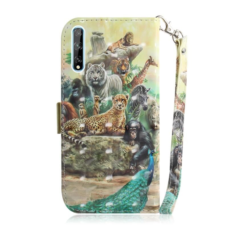 Θήκη δέρματος οριζόντιας αναδίπλωσης με μαγνητική έλξη και τρισδιάστατο σχέδιο για Huawei Y8p / P Smart S / Enjoy 10s, με βάση στήριξης, θήκη για κάρτες, πορτοφόλι και κορδόνι (Ζωολογικός κήπος)