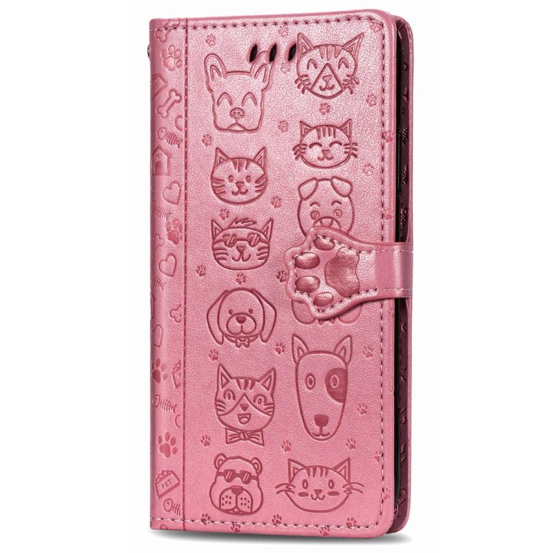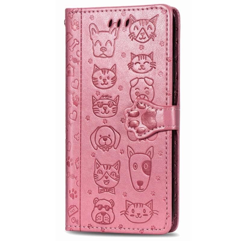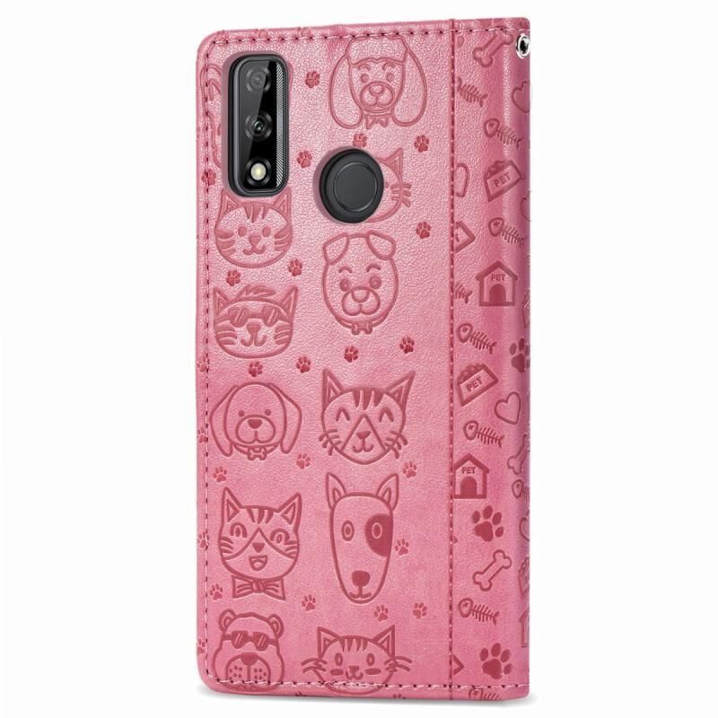 For Huawei Y8S Cute Cat and Dog Embossed Horizontal Flip Leather Case with Holder & Card Slots & Wallet & Cartoon Clasp & Lanyard(Pink)