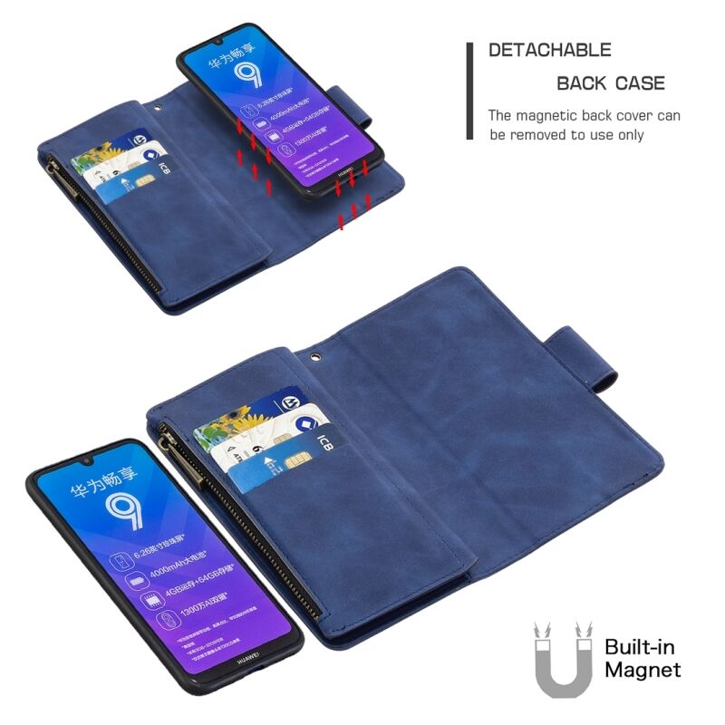 4. Πολυλειτουργικός σχεδιασμός, βολικές 9 υποδοχές για κάρτες, πορτοφόλι με φερμουάρ, θήκη, αποσπώμενο μαγνητικό προστατευτικό κάλυμμα στο πίσω μέρος