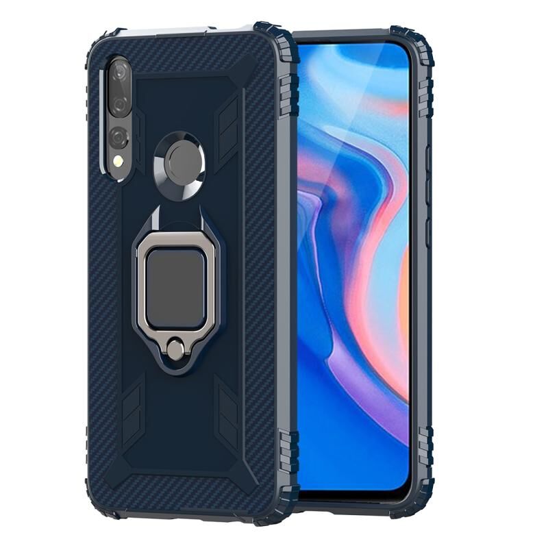Για Huawei Y9 Prime 2019 Carbon Fiber Προστατευτική θήκη με 360 μοίρες περιστρεφόμενη θήκη δακτυλίου (μπλε)