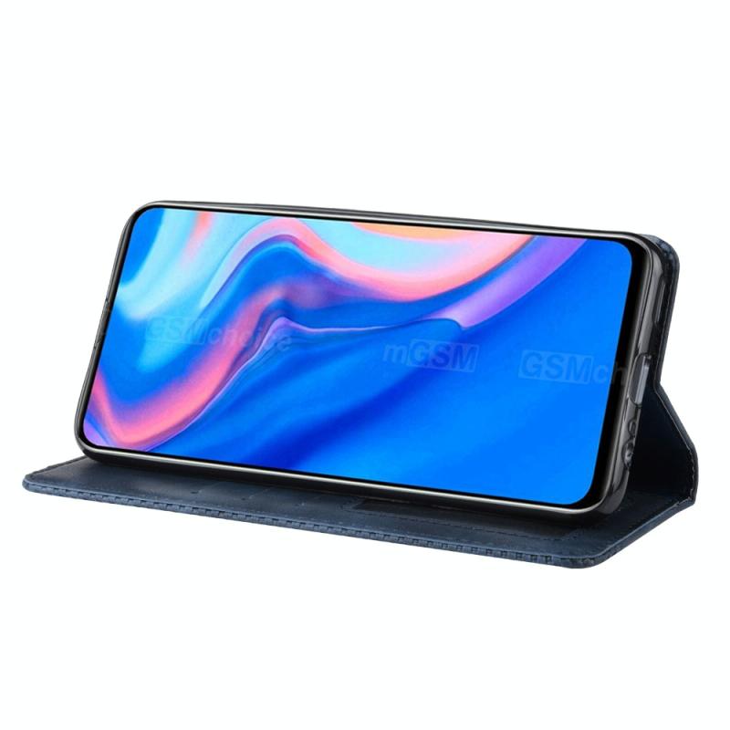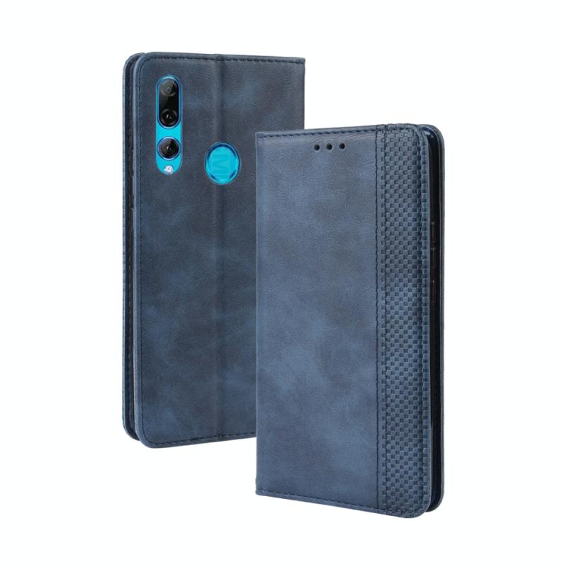 For Huawei Y9 Prime 2019 Magnetic Buckle Retro Crazy Horse Texture Horizontal Flip Leather Case with Holder & Card Slots & Photo Frame(Blue)