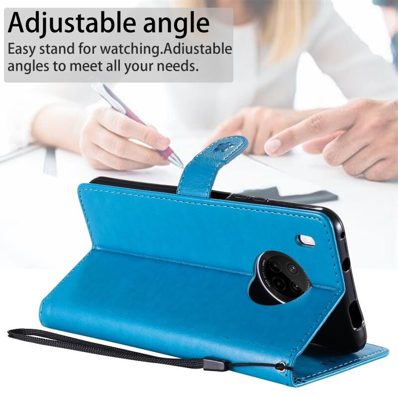 For Huawei Y9a Cat Bee Embossing Pattern Shockproof Horizontal Flip Leather Case with Holder & Card Slots & Wallet(Blue)