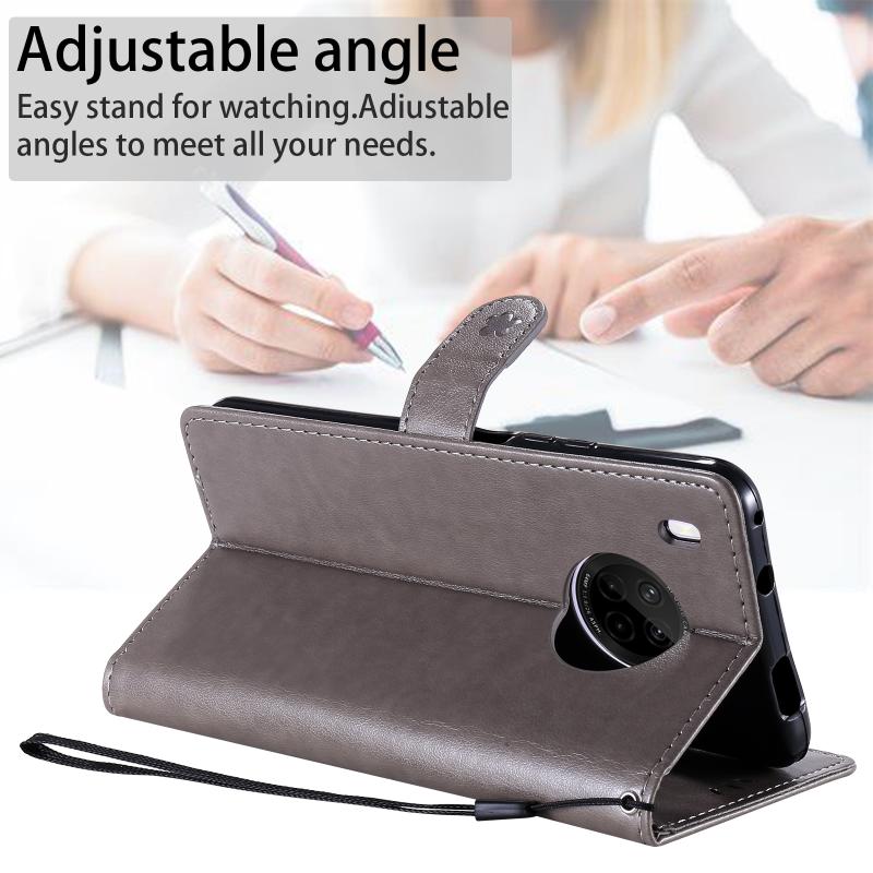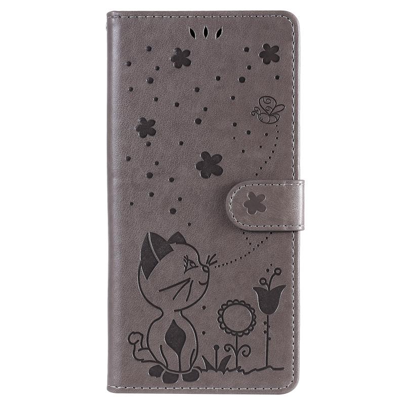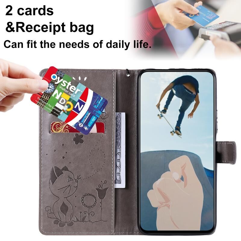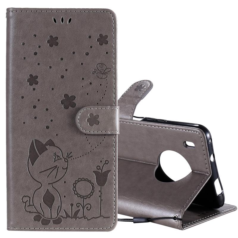 For Huawei Y9a Cat Bee Embossing Pattern Shockproof Horizontal Flip Leather Case with Holder & Card Slots & Wallet(Grey)