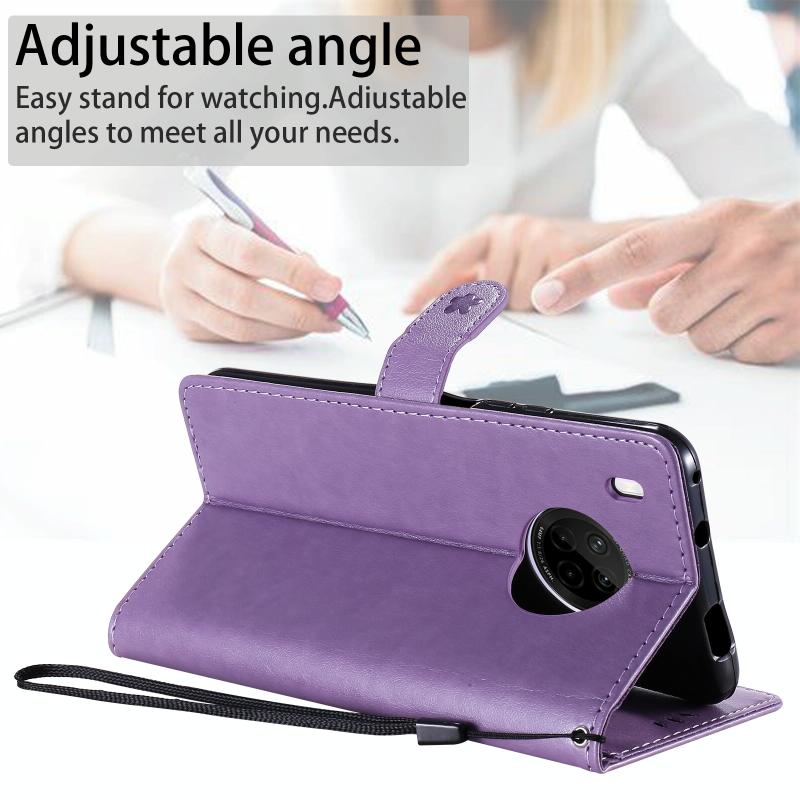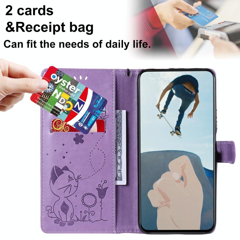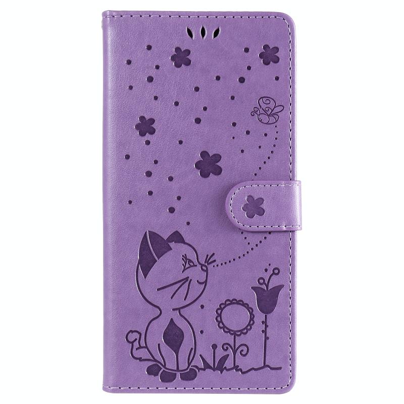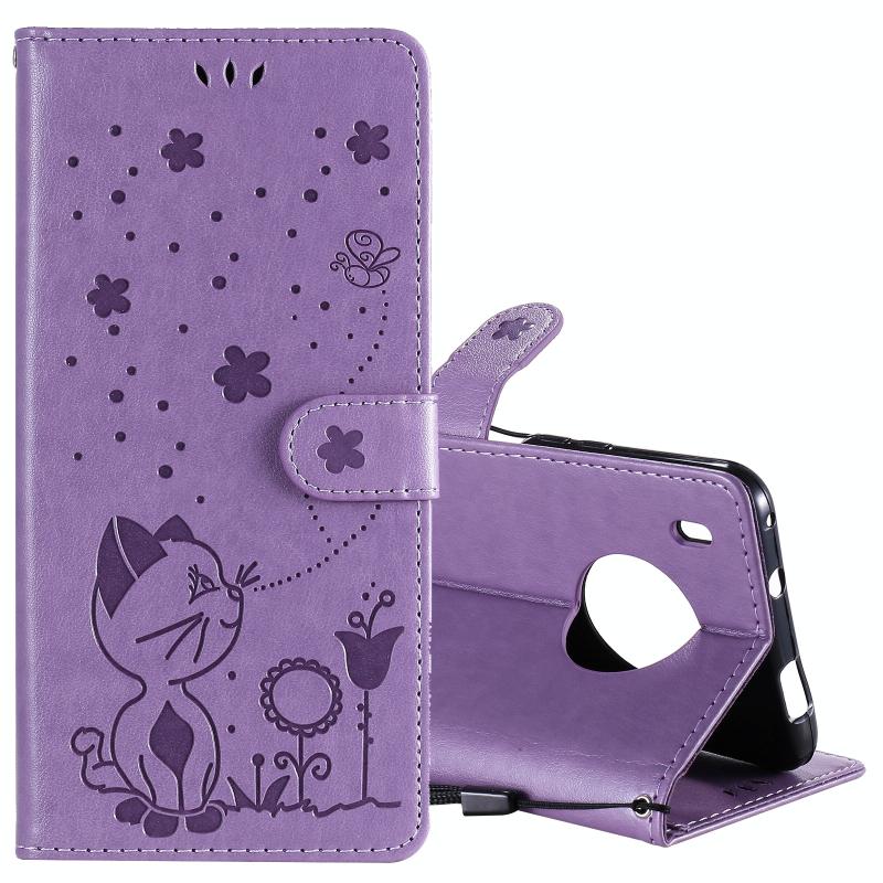 For Huawei Y9a Cat Bee Embossing Pattern Shockproof Horizontal Flip Leather Case with Holder & Card Slots & Wallet(Purple)