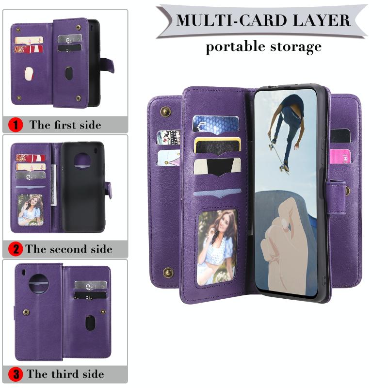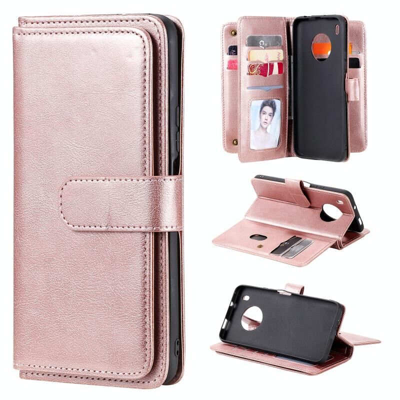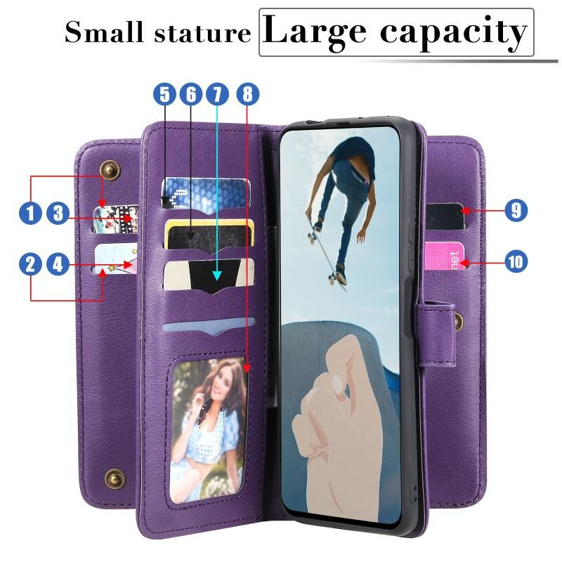Θήκη Huawei Y9a Πολυλειτουργική Μαγνητική Θήκη από Χαλκό με Οριζόντιο Άνοιγμα, Μονόχρωμη Δερμάτινη με 10 Θήκες για Κάρτες & Πορτοφόλι & Στήριξη & Κορνίζα Φωτογραφιών (Ροζ χρυσός)