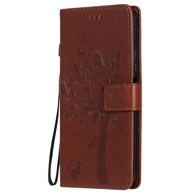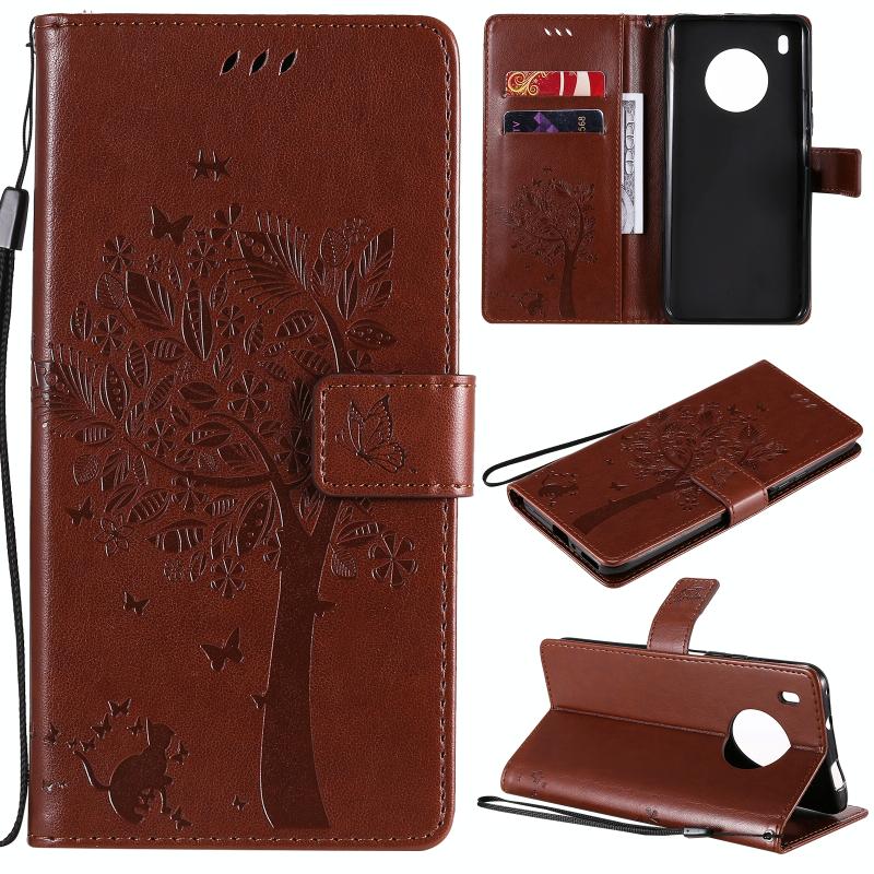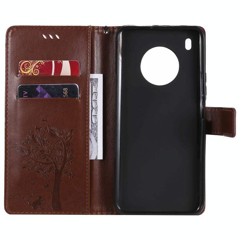 Θήκη για Huawei Y9a με σχέδιο Δέντρου & Γάτας, εκτύπωση με πίεση, οριζόντια αναδίπλωση, από δερματίνη PU με βάση στήριξης & θήκες για κάρτες & πορτοφόλι & κορδόνι (Καφέ)