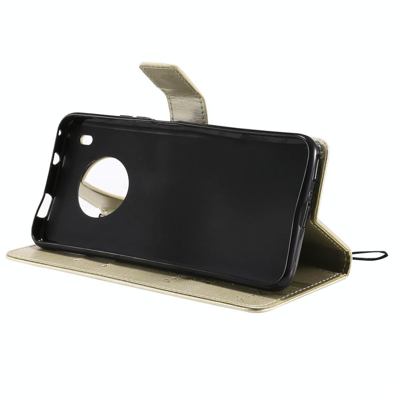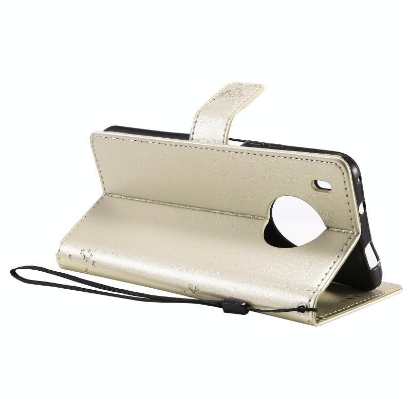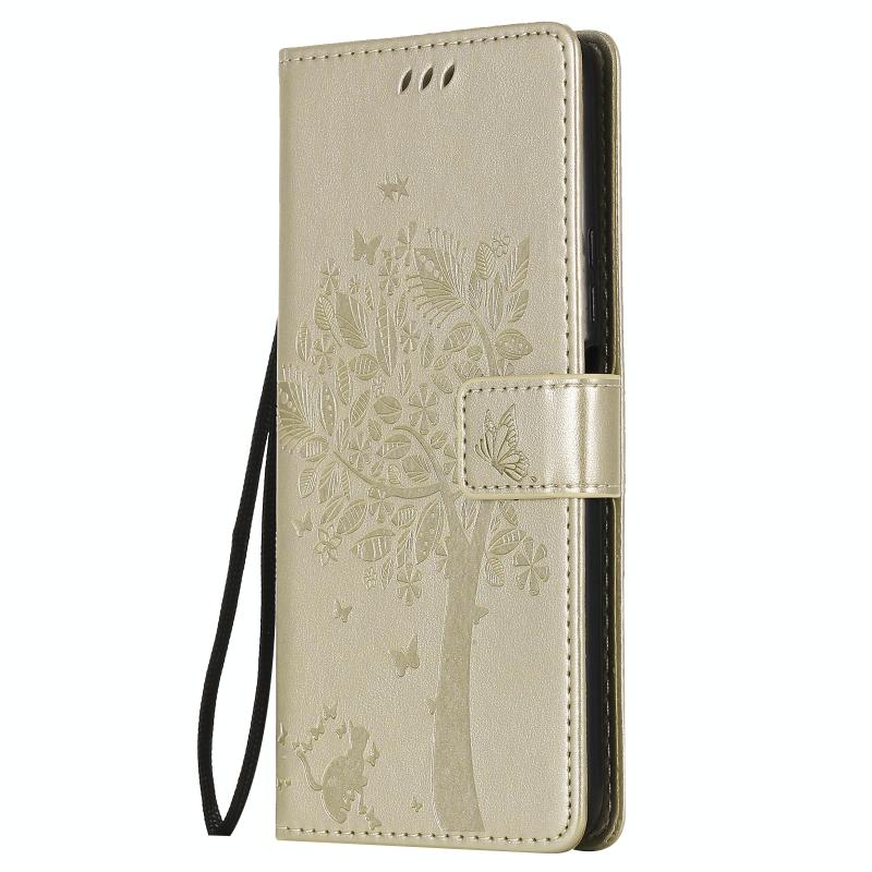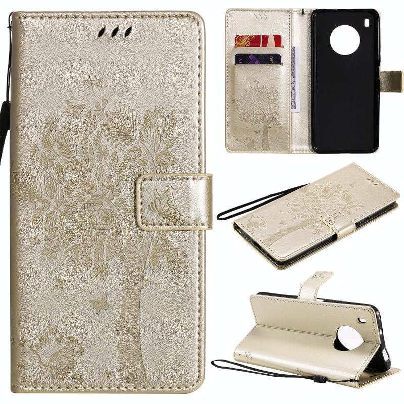 Θήκη Huawei Y9a με σχέδιο Δέντρου & Γάτας, εκτύπωση με πίεση, οριζόντια αναδίπλωση, από δερματίνη PU με βάση στήριξης & υποδοχές καρτών & πορτοφόλι & κορδόνι (Χρυσό)