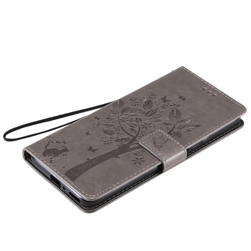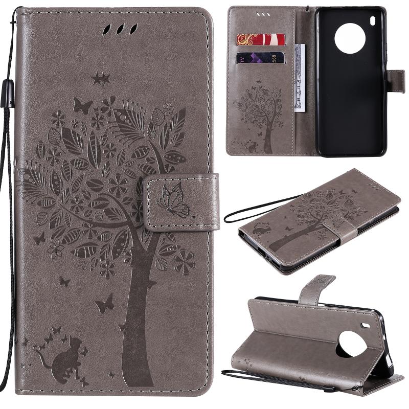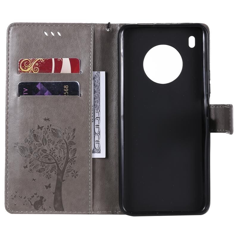 Θήκη Huawei Y9a με σχέδιο Δέντρου & Γάτας, εκτύπωση με πίεση, οριζόντια αναδίπλωση, από δερματίνη PU με βάση στήριξης & υποδοχές καρτών & πορτοφόλι & κορδόνι (Χρυσό)
