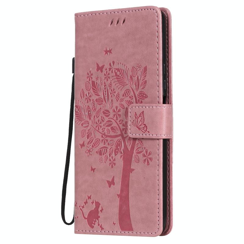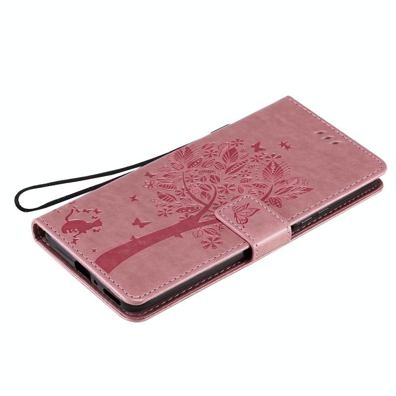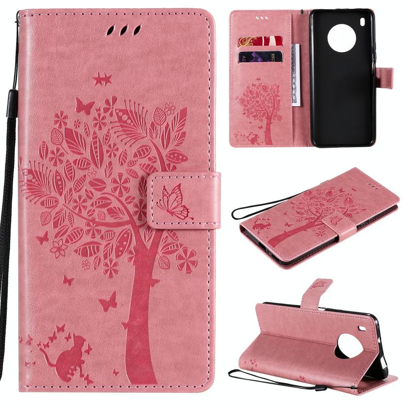 Θήκη Huawei Y9a με σχέδιο Δέντρου & Γάτας, εκτύπωση με πίεση, οριζόντια αναδίπλωση, από δερματίνη PU με βάση στήριξης & υποδοχές καρτών & πορτοφόλι & κορδόνι (Χρυσό)